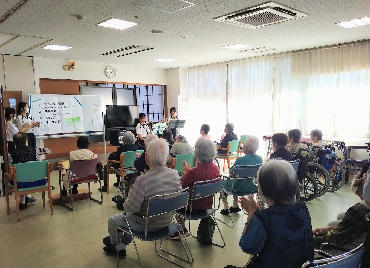 生徒さんによるリコーダーや楽器の演奏、また、風船バレーやボーリングにも挑戦しましたよ♪